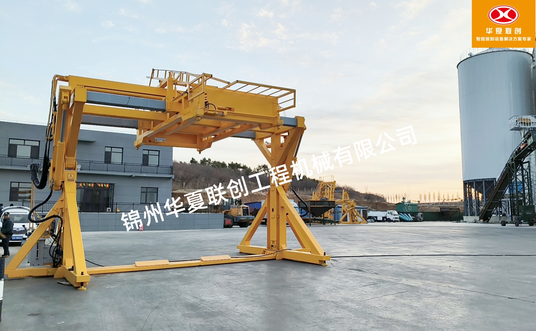 全新集裝箱翻轉機,采用PLC控制單元,一鍵操作集裝箱...